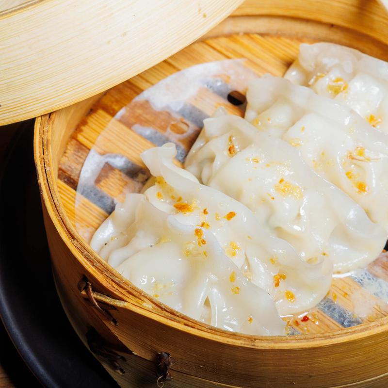 Shrimp wrapped in a clear dumpling shell steamed