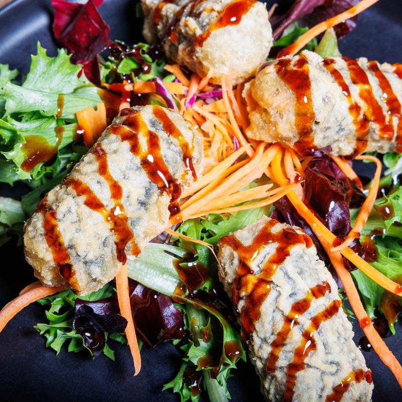 Glass noodles wrapped in seaweed tempura fried