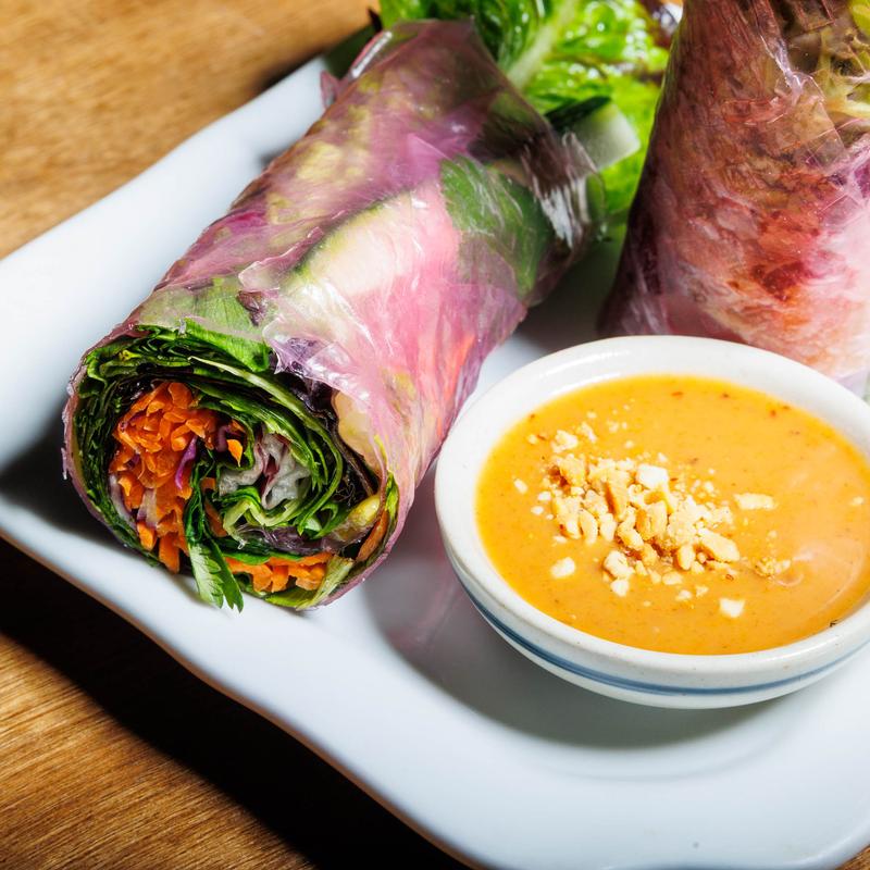 Thin vermicelli rice noodles, cucumbers, carrots, spring mix, bean sprouts, cilantro, choice of Chicken, Tofu, Veggies, Beef +$2.00, or Shrimp +$3.00 (GF, V options)