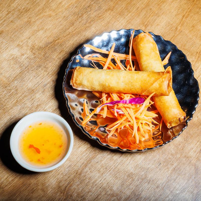 Cabbage, carrots, glass noodles, wrapped in springroll wrap deep fried